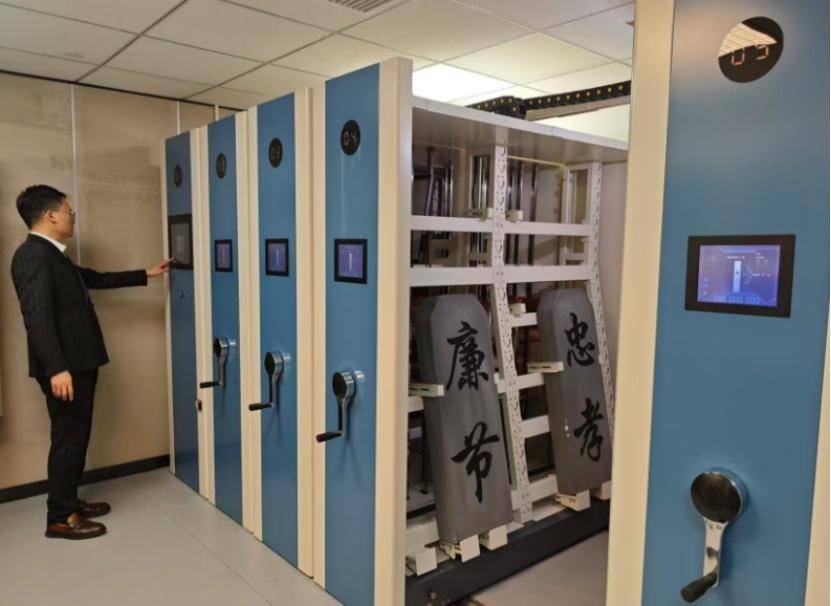 宏瑞文博的文物库房内,工作人员正在操作由该公司开发的智能文物展柜。杨源 摄